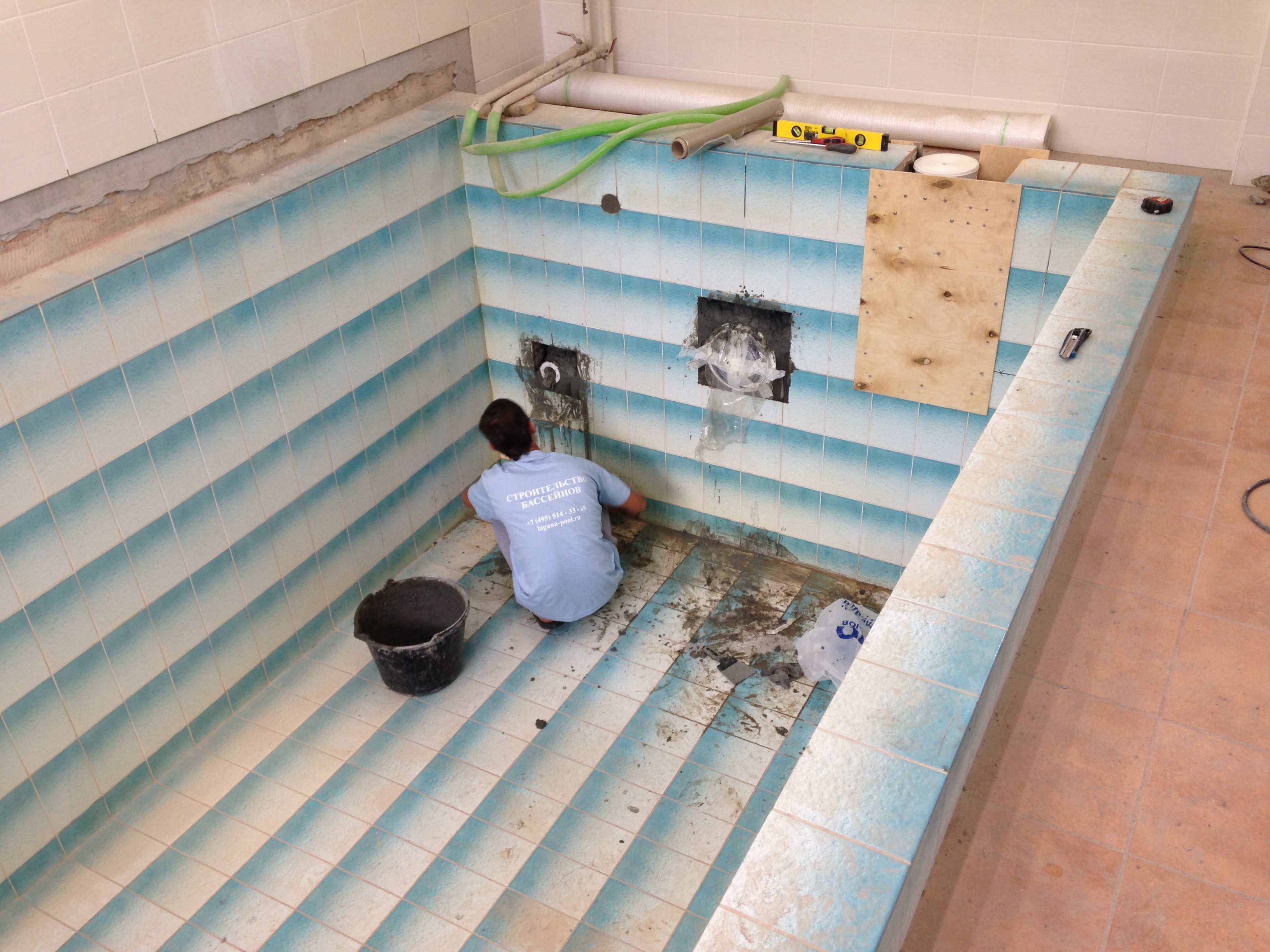 Объект: город Москва. В 2016 году производили работы по облицовке чаши бассейна пленкой ПВХ. Причем чаша существовала уже давно и была отделана плиткой, наверное, с советских времен. Перед нами стояла задача - реконструкция бассейна пленкой ПВХ.