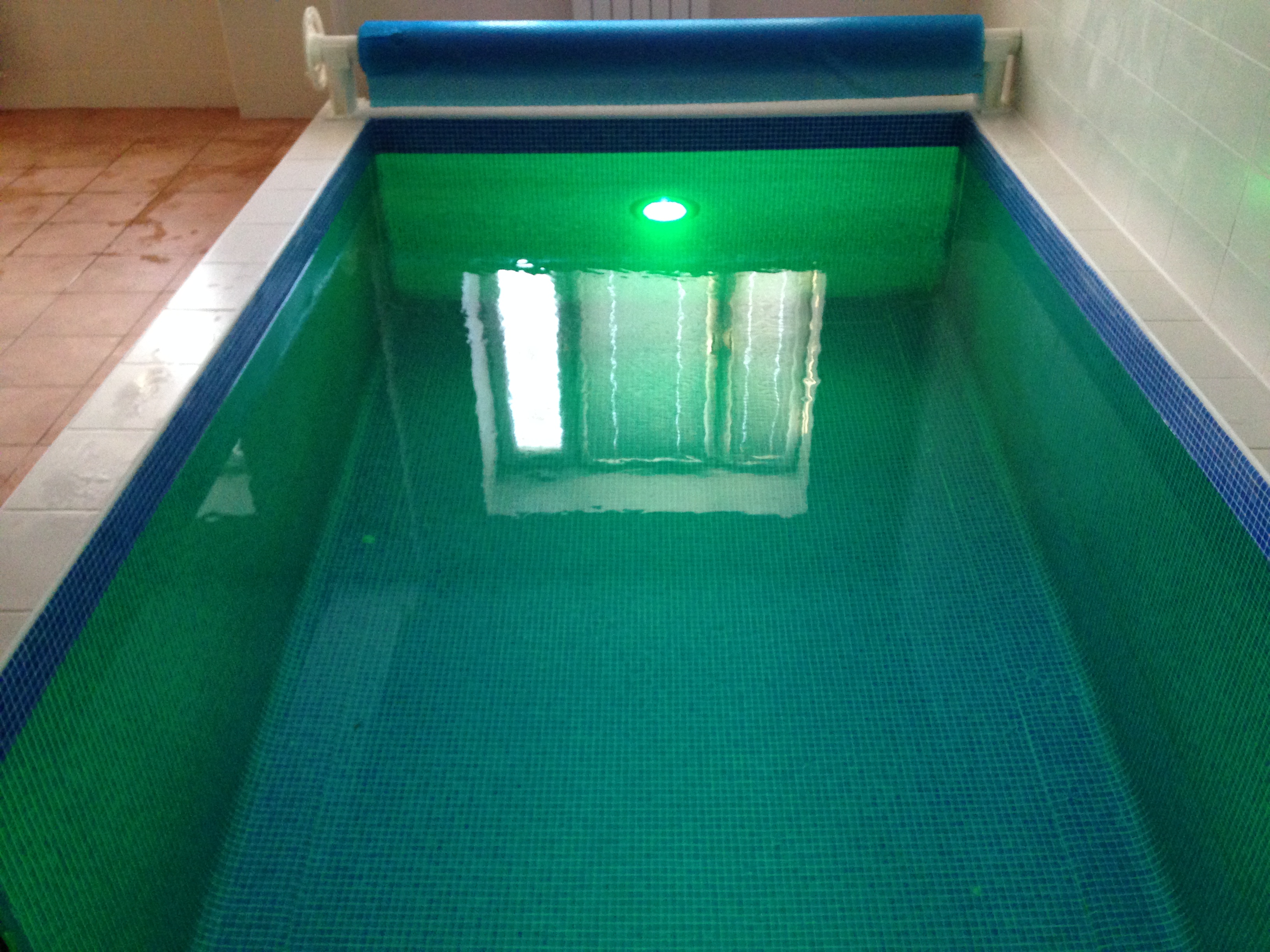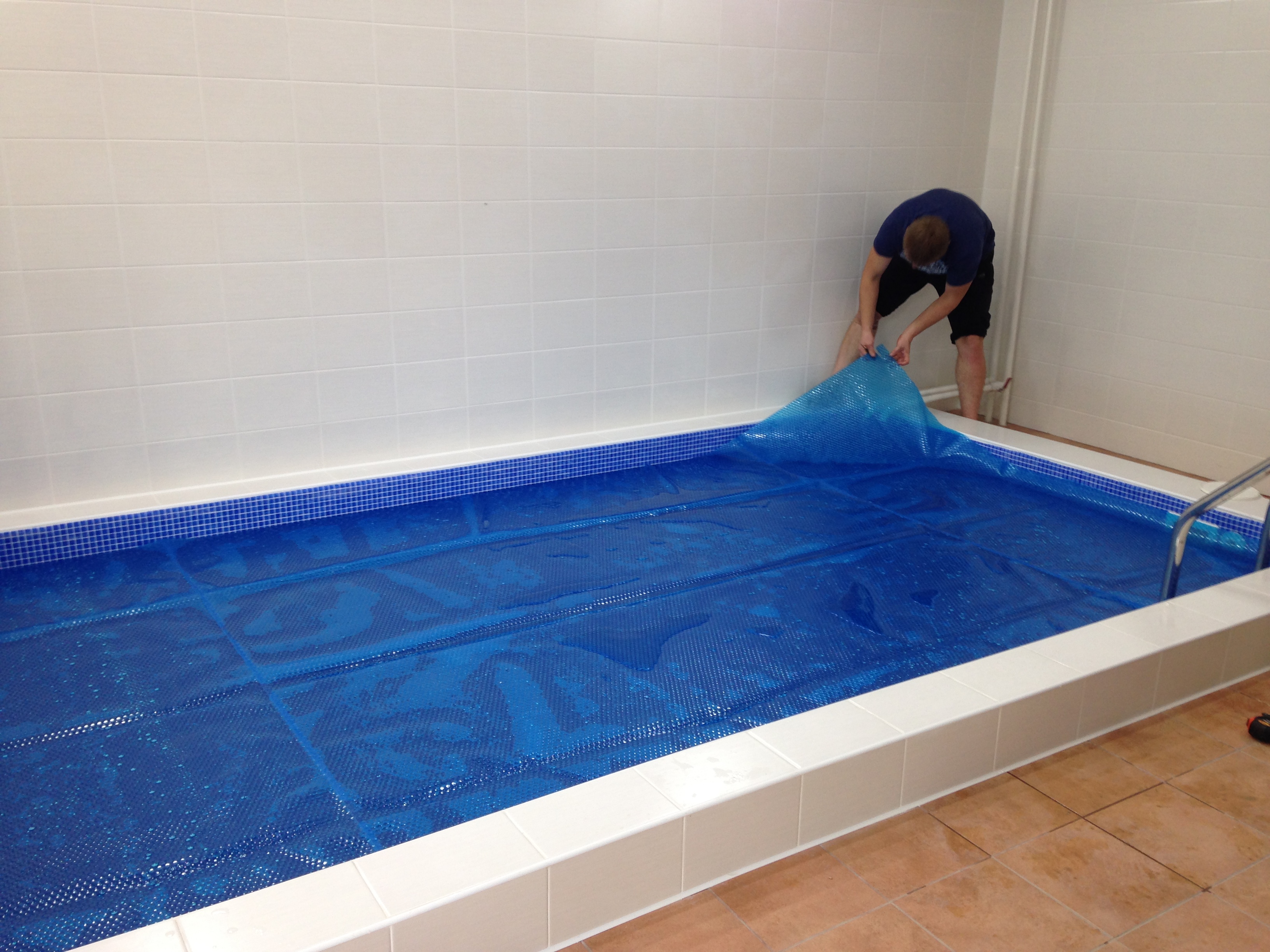 На следующий день, после запуска фильтровальной установке и добавления химических реагентов, вода стала прозрачной, на дне лишь был осадок, который мы удалили донным пылесосом.Затем у нас был перерыв около недели, пока заказчик производил отделку борта плиткой. Как плитка была уложена, мы привезли сматывающее устройство и плавающее покрывало и установили. Таким образом мы закончили реконструкцию бассейна пленкой ПВХ. В целом получилось все хорошо. Сами оцените!