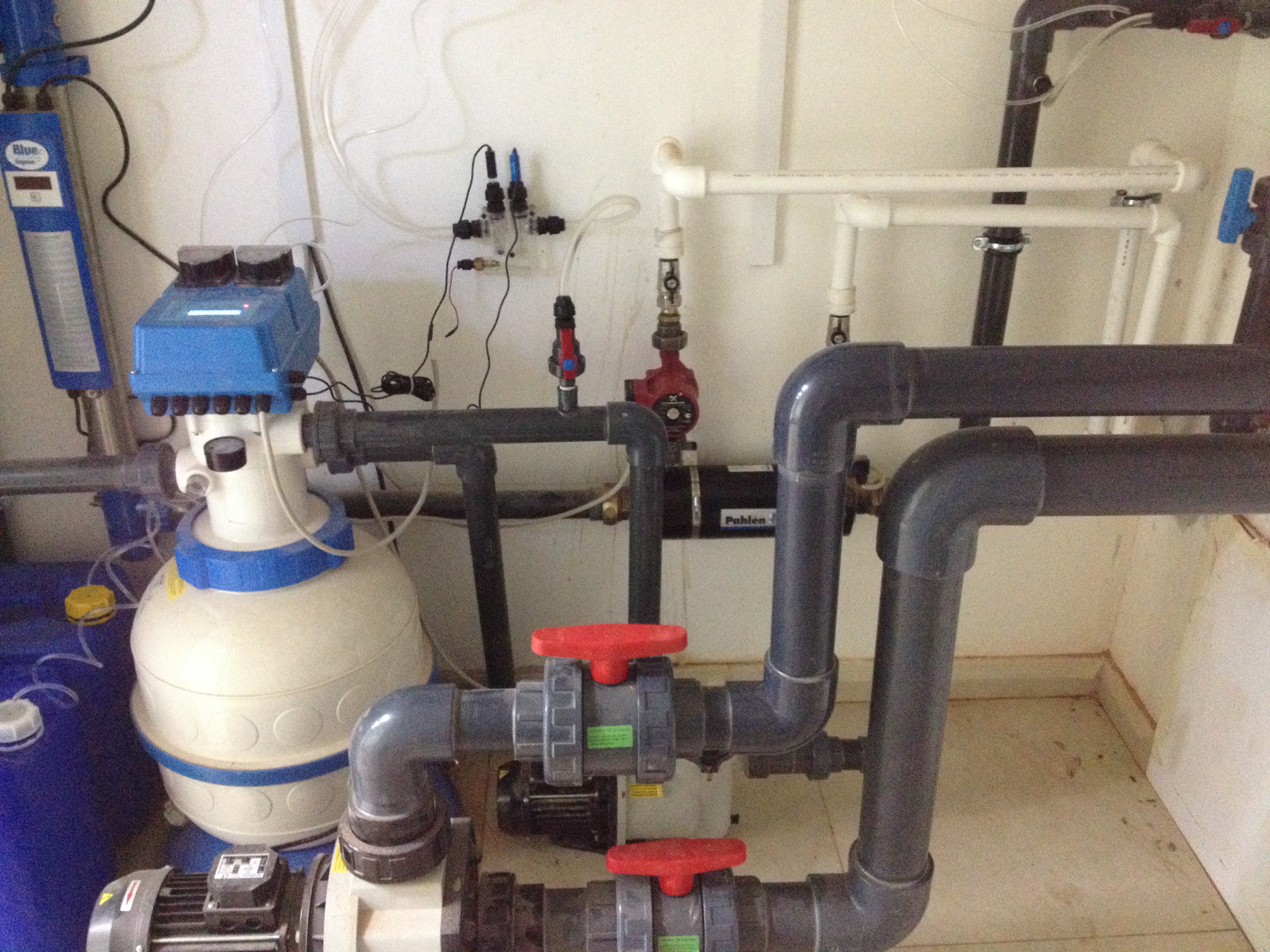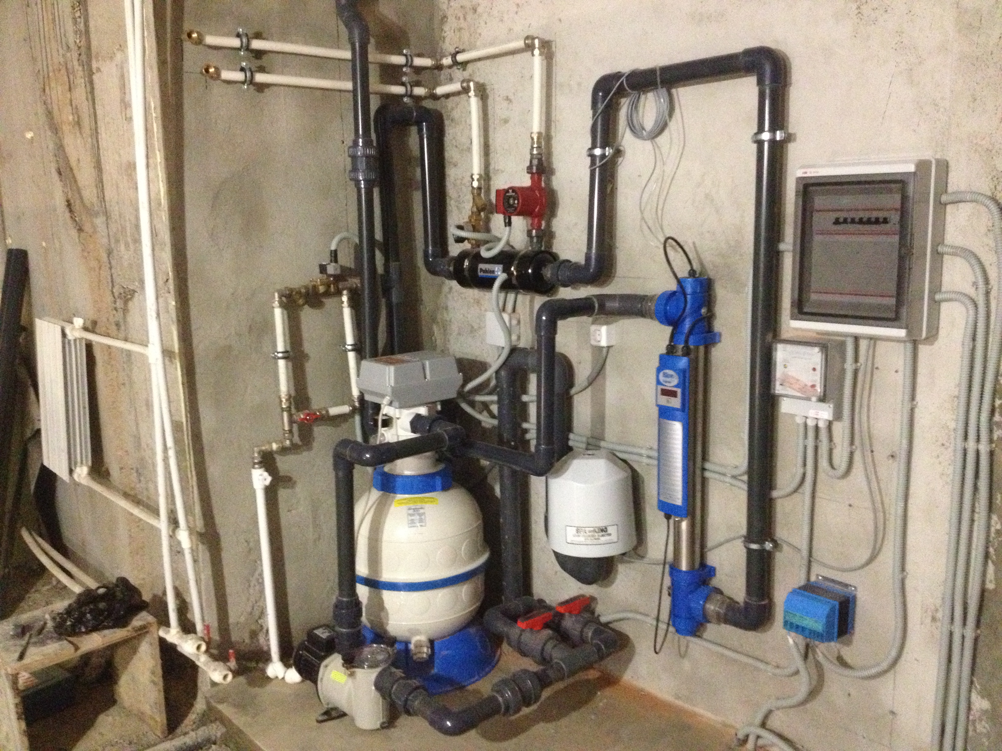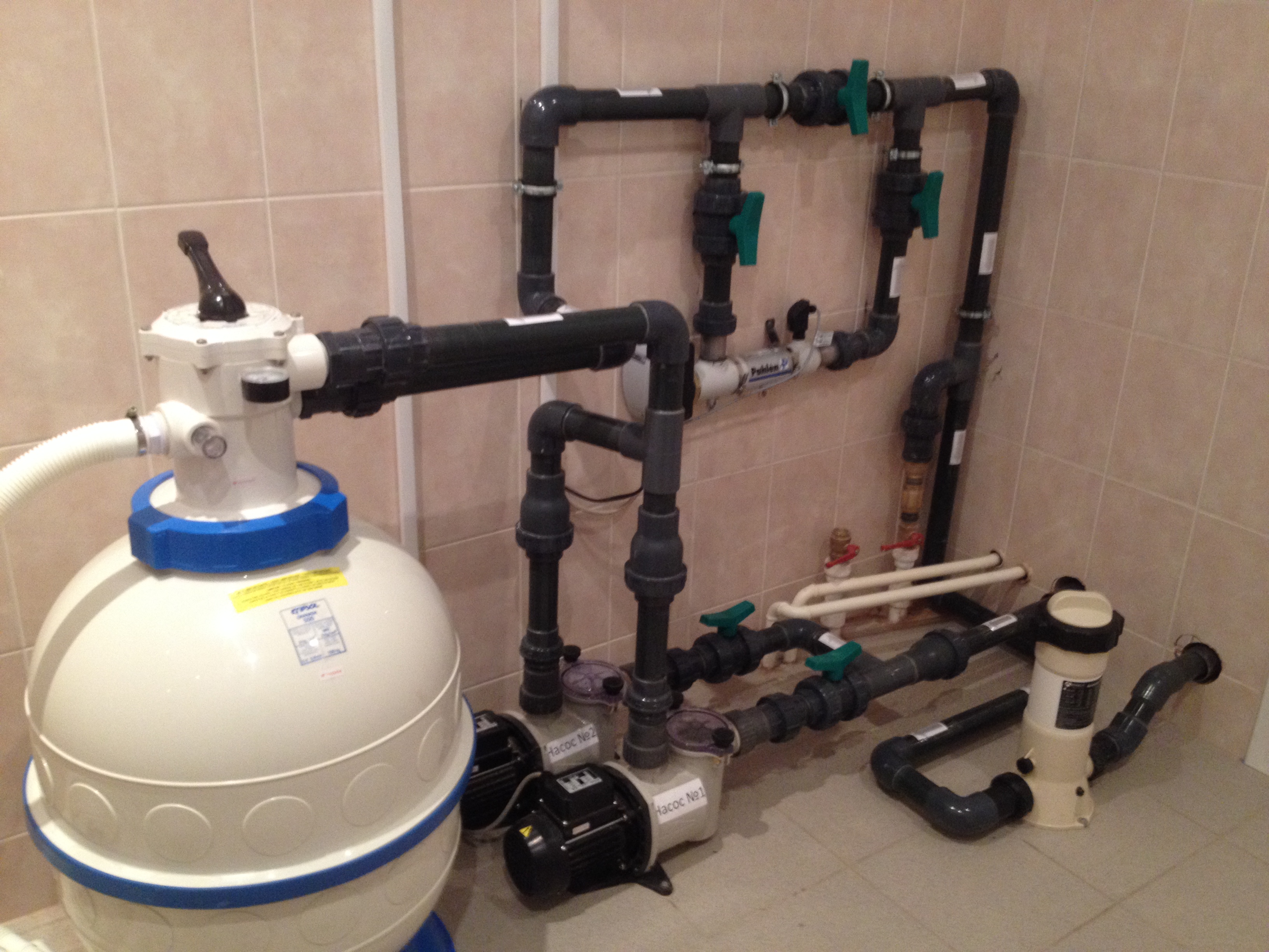 К оборудованию для бассейнов относят огромную номенклатуру агрегатов и узлов. К основному оборудованию можно отнести фильтры, насосы, фильтровальные установки, закладные элементы, с помощью которых осуществляется фильтрация воды (скиммеры, переливные патрубки, форсунки возврата воды, донные сливы), трубы и фитинги, соединяющие все узлы, лестницы и поручни, а также блоки управления этим оборудованием. Подогрев воды в бассейне создают теплообменники, электрические нагреватели, тепловые насосы. Дополнительное оборудование- это подсветка воды (светодиодная и галогенная), различного вида аттракционы, такие как водопады, противотоки, гейзеры, гидромассажные установки. Также сюда относят защитные покрытия, автоматические станции дозирования реагентов, системы дезинфекции ионами меди и серебра, ультрафиолетовые установки, автоматические роботы-пылесосы. В соответствующих разделах остановимся на каждом таком оборудовании подробнее.